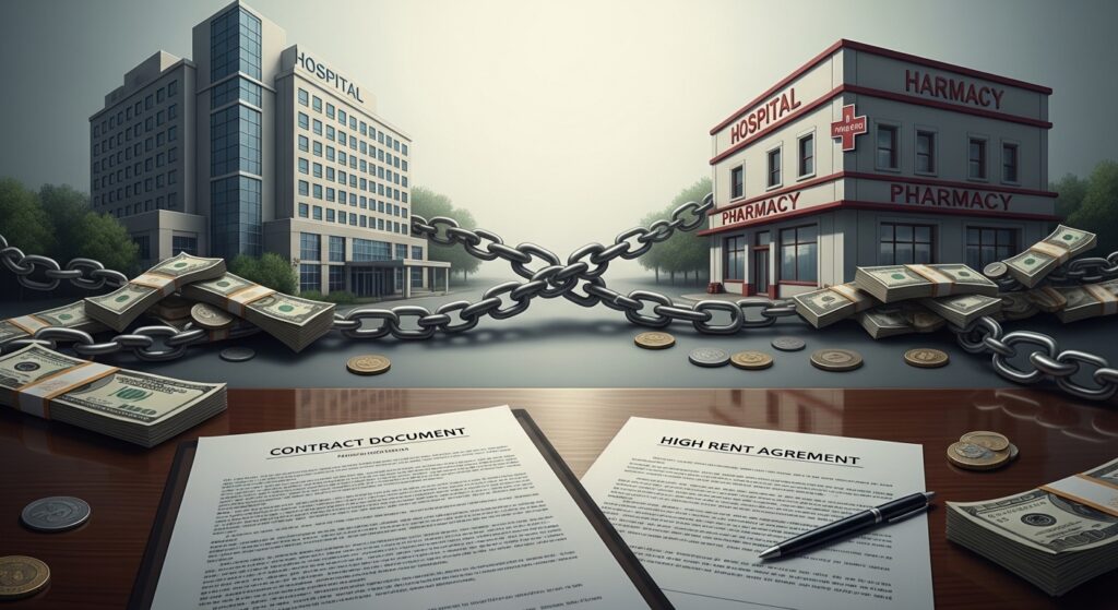 - 薬局が病院に「高い家賃」を払う。