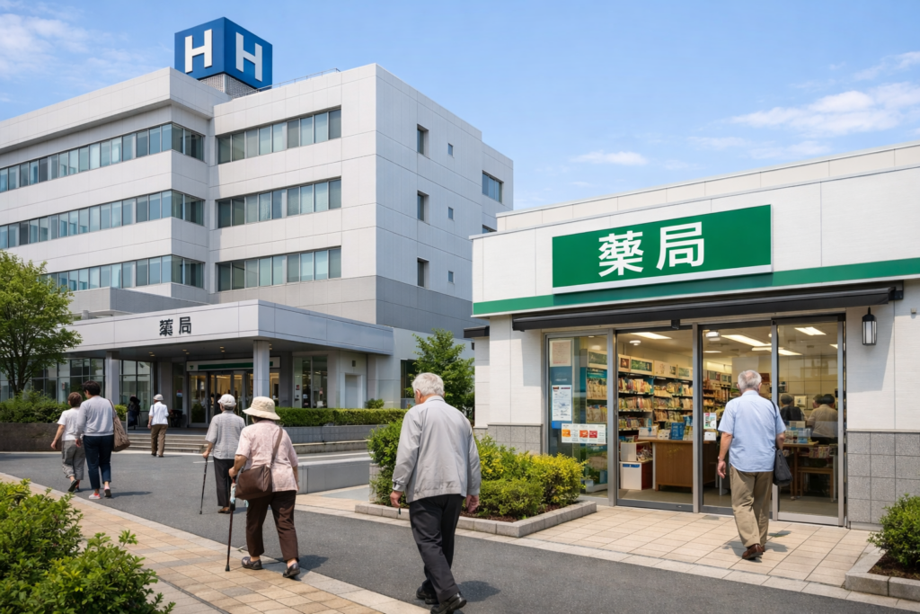 かつては、病院の建物の中に薬局がある「院内処方」が主流でしたが、1970年代以降、国は「医師が薬を出しすぎるのを防ぎ、専門的なチェック機能を働かせる」ために、薬局を病院の外に出す医薬分業を強力に推進してきました。